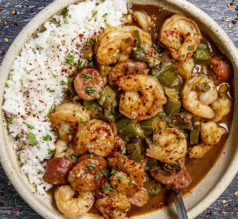 Make it heartier: You can include smoked sausage (like andouille) along with shrimp for a meat-and-seafood gumbo.